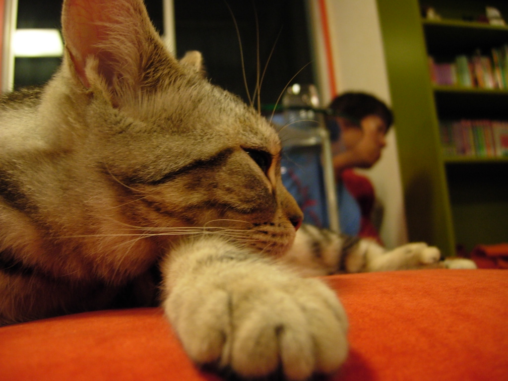 お出迎えはおまかせ。モカちゃん目当ての方もいらっしゃるとか☆良い子ですよ~。人見知りだったんですが、最近は常連さんと遊んでくれます。