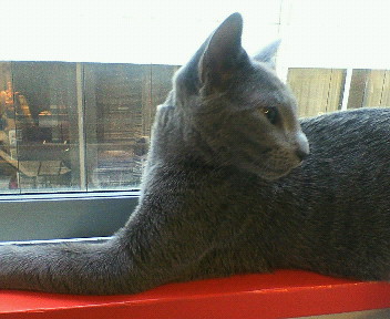 窓辺で通信している姿を良く見かけます。モカにも好かれる謎フェロモン放出中♪